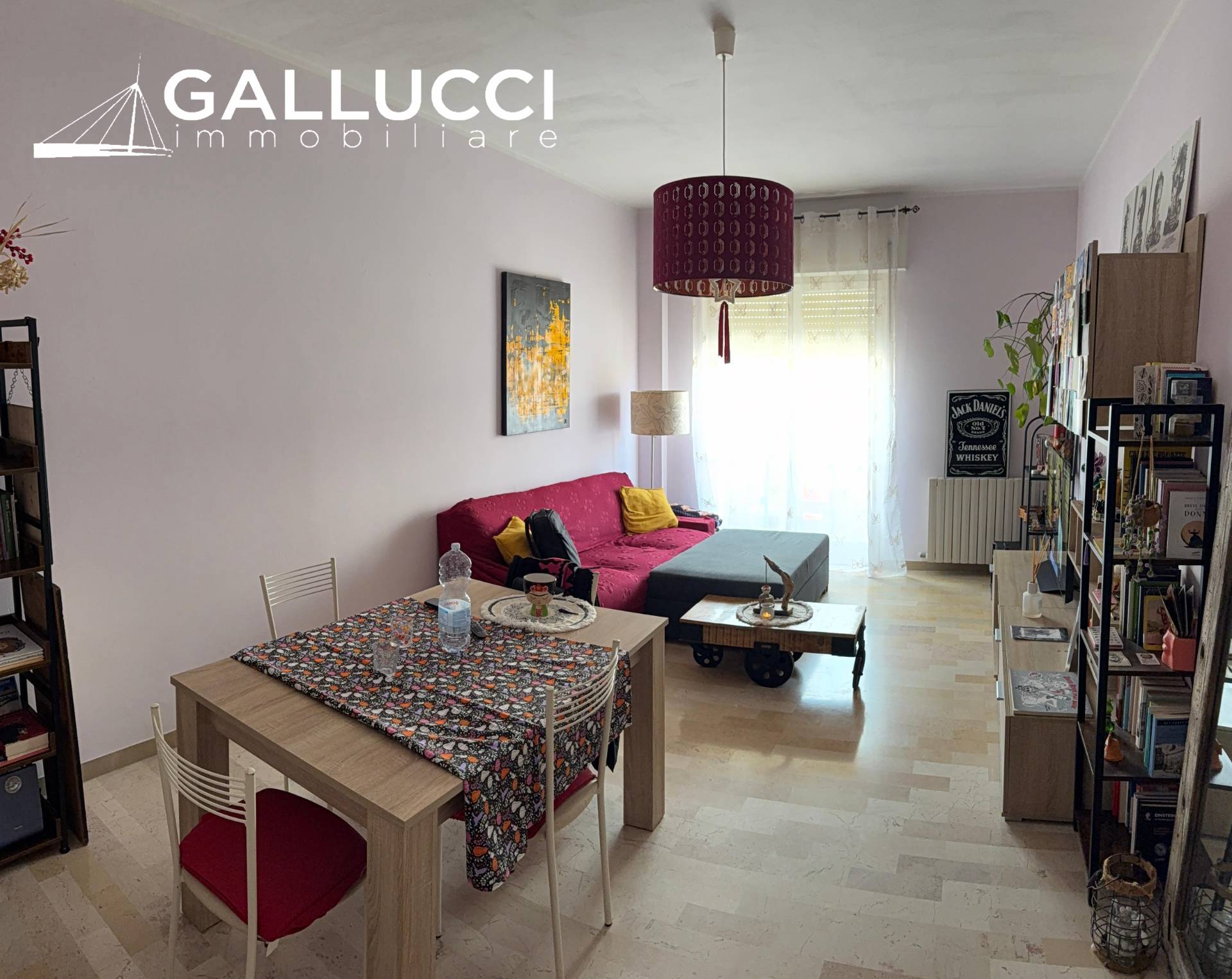L’immobile è composto da ampia sala, cucina separata e abitabile, una camera singola, una camera matrimoniale, ripostiglio, bagno e balcone.