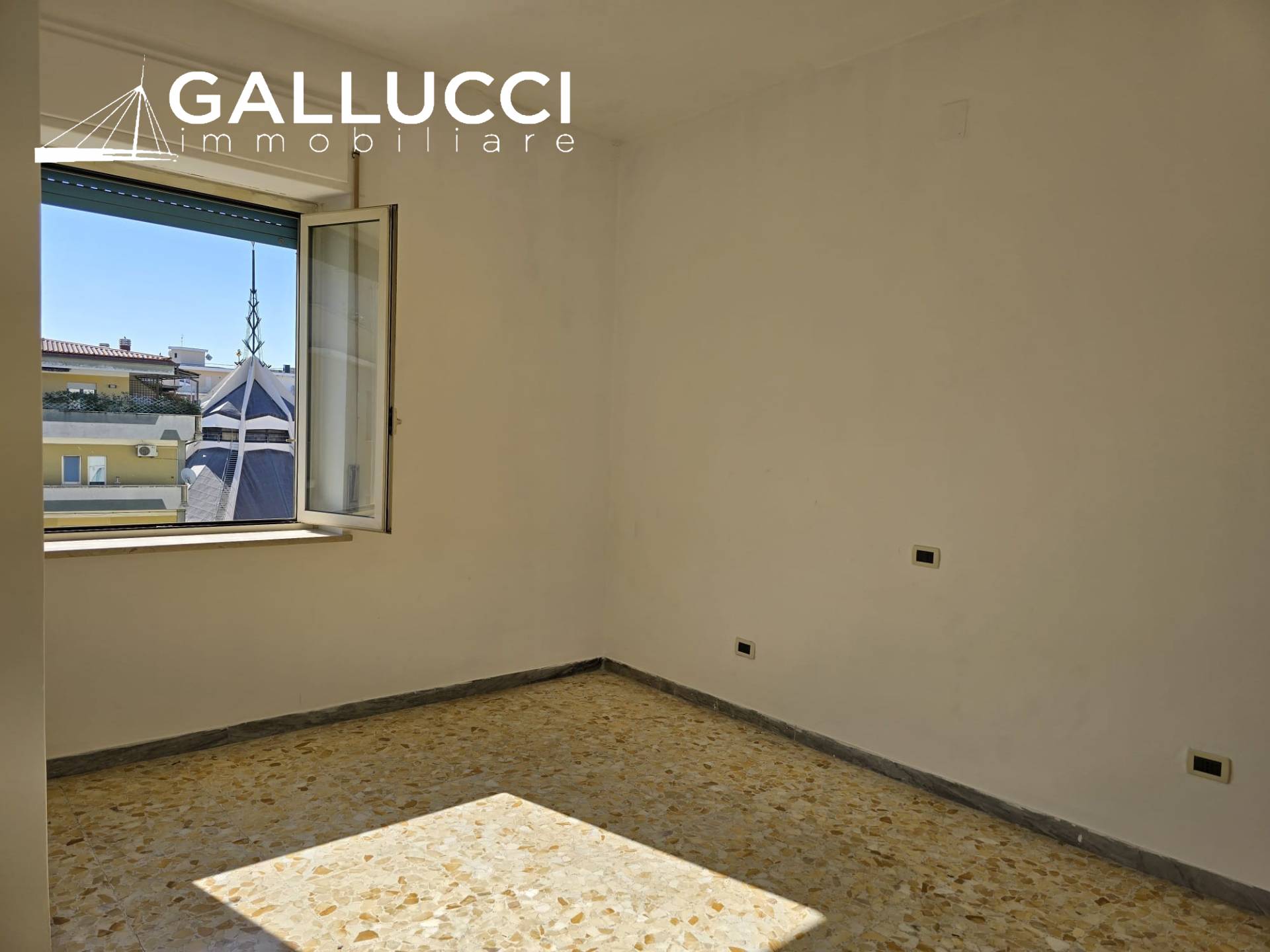L'immobile, sito al sesto piano di palazzina con ascensore, è così composto: ingresso, disimpegno, soggiorno, cucina separata e abitabile, tre camere, un bagno finestrato e due balconi di cui da uno è possibile scorgere il mare.